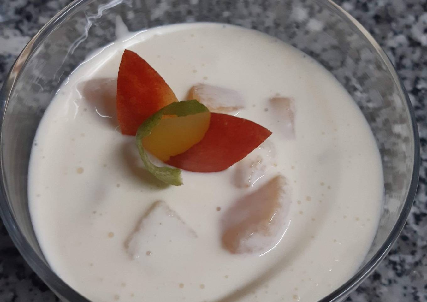 - Llevas todos los ingredientes excepto la fruta a la licuadora y llevar a refrigeración por mínimo media hora