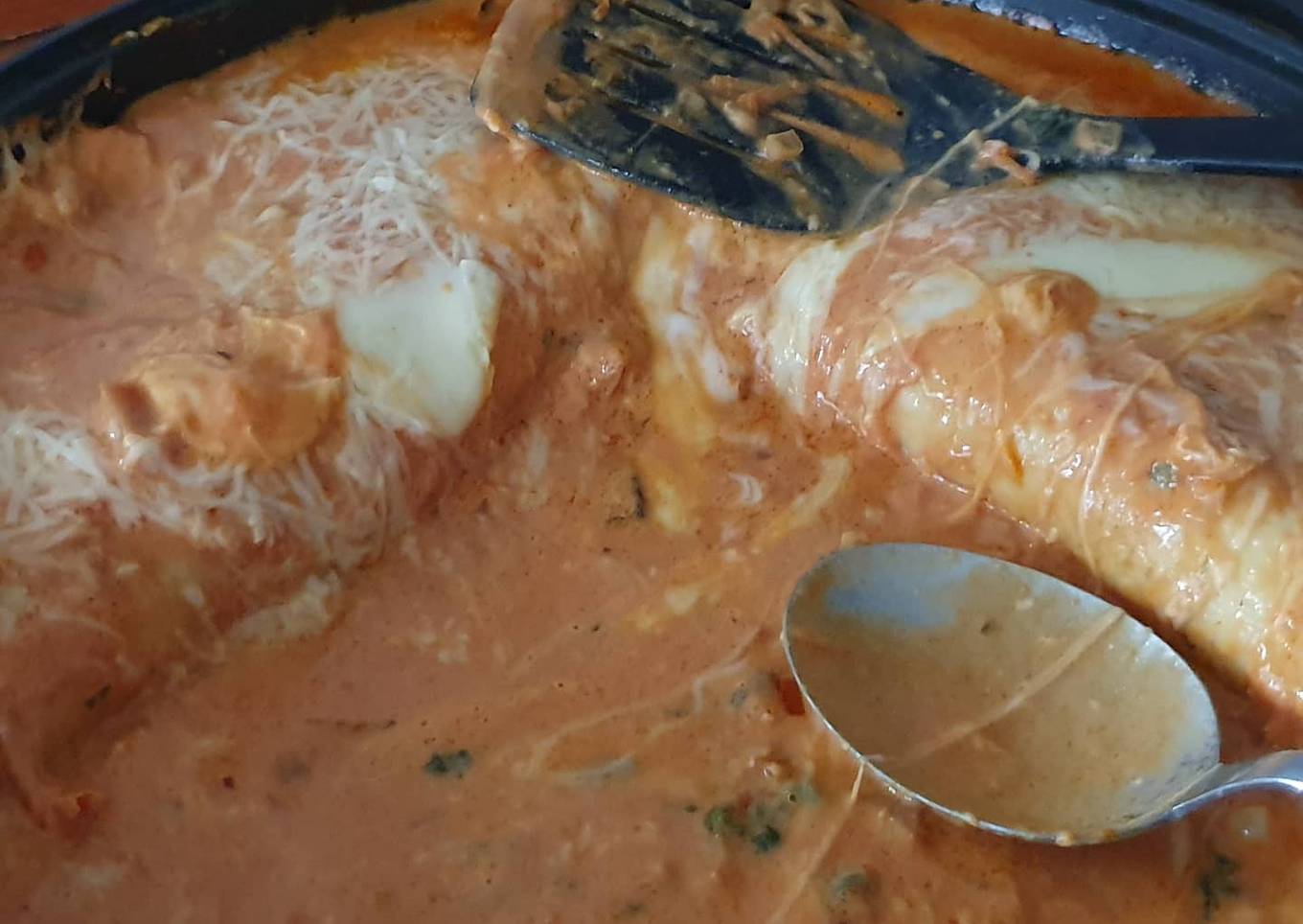 - Cococamos el resto de la salsa y cocinamos.por 5 minutos. Lavanos todo los utensilios y servimos.
