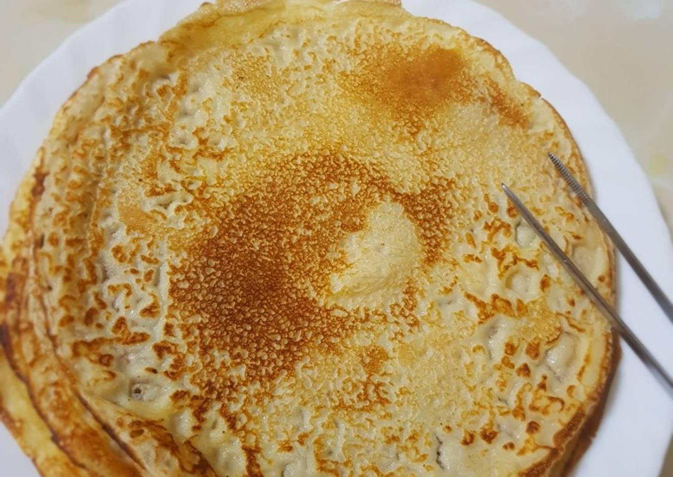 - Vierte un poco de masa y espárcela bien por toda la sartén. Cuando empiece a cuajarse, dale la vuelta y cocina brevemente por el otro lado. Repite la operación hasta terminar toda la masa